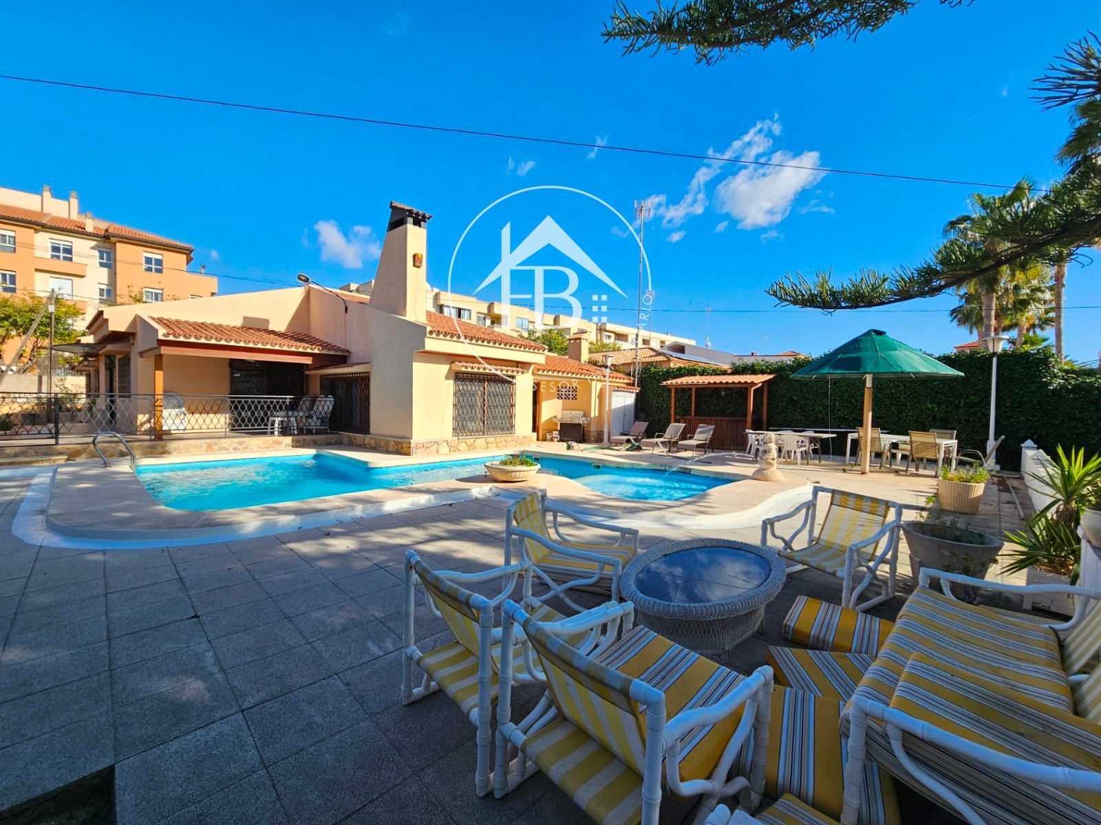 Es una vivienda de 379m2 construidos en una parcela de 1.143 m2, distribuidos en una planta, sótano, casa de invitados , barbacoa, baño exterior...